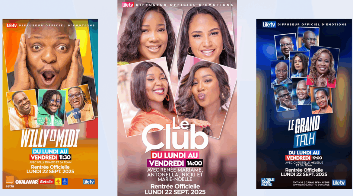 Lors de sa conférence de presse de rentrée 2025, Life TV en Côte d’Ivoire a mis en avant ses principaux programmes parmi lesquels quelques nouveautés mais surtout une reconduction des programmes populaires existant depuis le lancement autour du divertissement, de l’humour, et la participation du public. L’actualité et les sujets de société sont également présents mais obtiennent moins de succès que les programmes de divertissement